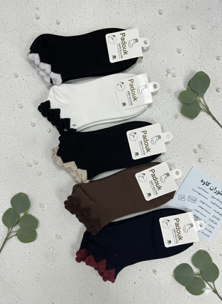 جوراب نخ پنبه گلدوزی شده پلو